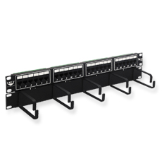 Vertical CAT 5e mini Patch Panels are available in 12-port size and are ideal for installations where space is at a premium and open bay racks cannot be used. Exceeds TIA/EIA CAT 5e standards. Includes mounting screws. |
