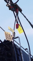On Aerial Fiber Optic Cable Installs:If you are installing fiber optic cable via aerial means- between building and amongst other cable types- ALWAYS LABLE your fiber cable- so you know which one is carrying the signal.