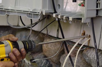 When installing into another house or going through a wall- always make sure there is no power cable or electrical cable in the way. Always make sure that the hole is big enough for the fiber optic cable to fit through the hole. Always secure the fiber optic cable on BOTH SIDEs of the entry and exit way.