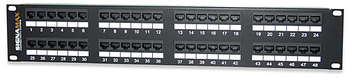 Signamax patch panels are offered in a variety of configurations for voice, data, audio and video distribution cabling applications for TIA/EIA Categories 3, 5e and 6. We provide users with advanced product designs and features for effective horizontal cabling.