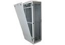 Its innovative design is based on the use of aluminum profiles for the four vertical pillars, which are connected solidly to two welded steel end-frames. This results not only in low weight and an elegant appearance, but also permits quick assembly. Due to the rigidity provided by the steel end-frames, our data cabinet is able to handle equipment loads of up to 770 to 1500 lbs. This means it an ideal choice for mid-range use as a Server enclosure, or for network cabling purposes.